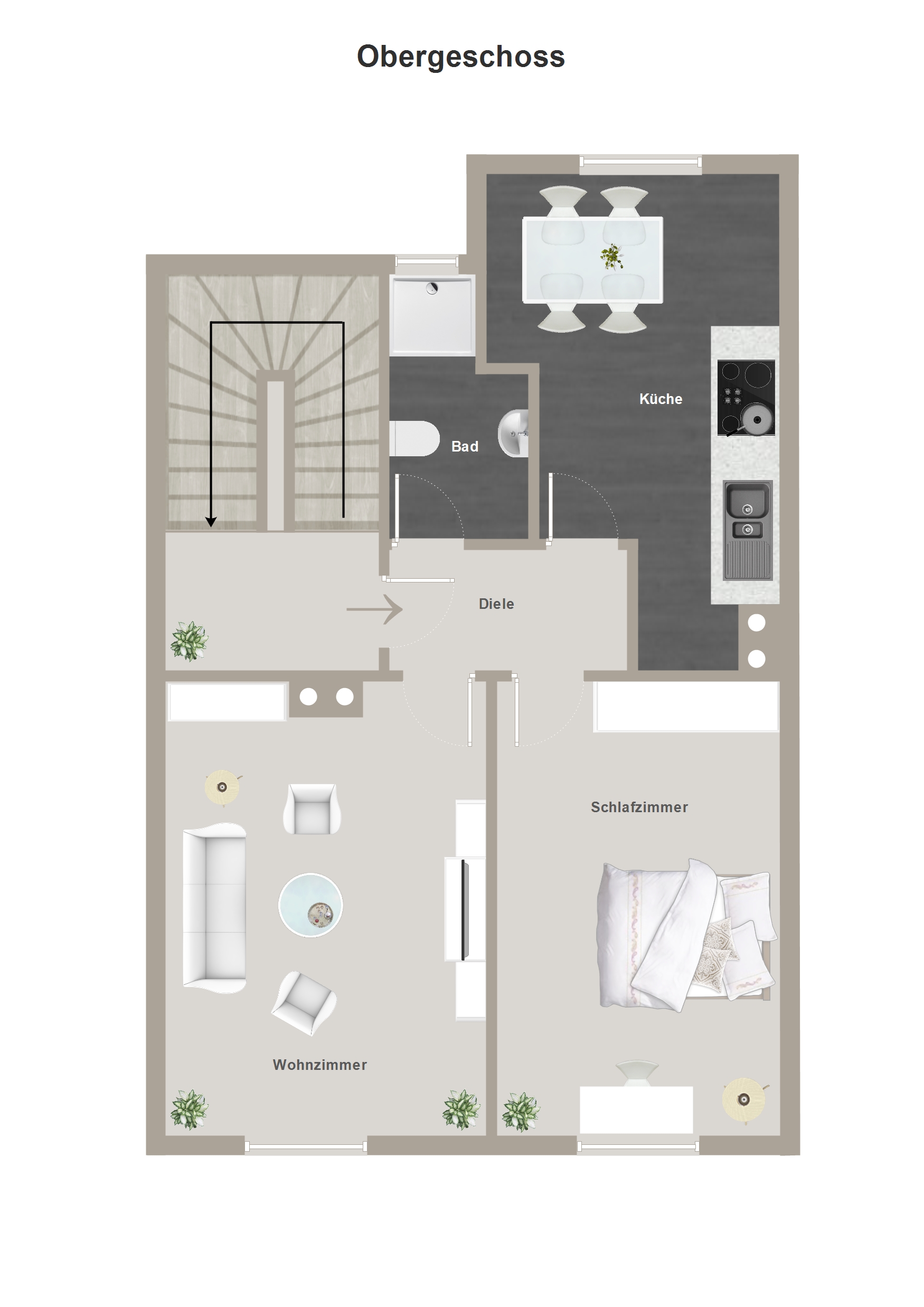 In jedem Wohnraum befinden sich Lamimatböden. In der Küche befindet sich eine Küchenzeile und der Essbereich. Die Einbauküche besteht aus einem Kühlschrank mit Gefrierfach, einem Herd mit Cerankochfeld, Spüle, Ober- und Unterschränke. Das Dusch-Bad ist hell und freundlich gefliest. Auch ein eigenes Kellerabteil mit Strom und Anschlussmöglichkeit für eine Waschmaschine ist vorhanden.