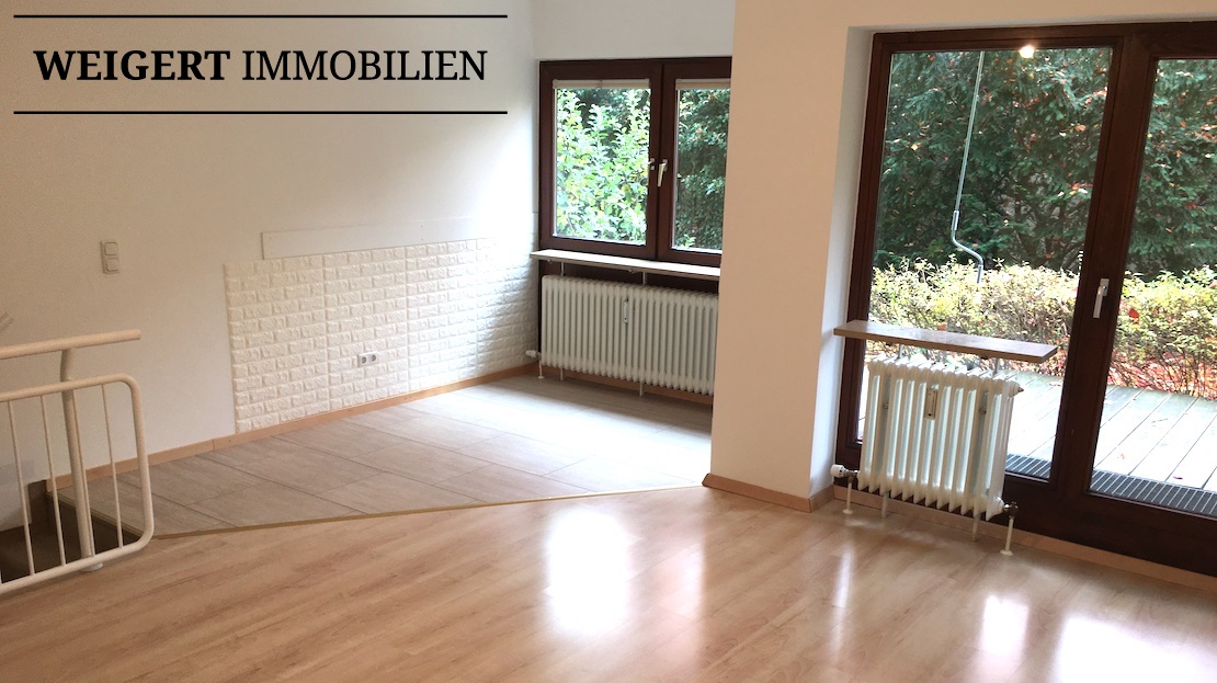 - Ahorn-Parkettboden im Wohnzimmer, Teppichböden im Flur und im zweiten Wohnraum, Vinyl in der Essnische und im Souterrain