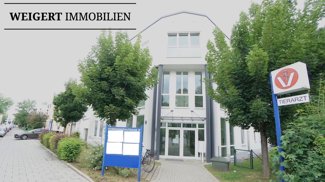 Die Büroflächen liegen in einem gemischt genutzten Gebiet mit sehr guter Verkehrsanbindung direkt an der Kreuzung Freisinger Landstraße, Ecke Floriansmühlstraße. Die Räumlichkeiten befinden sich im Erdgeschoss eines modernen und gepflegten Mehrfamilienhauses auf dem Baujahr 2002. Zum Objekt gehören außerdem 2 Stellplätze (Duplex) in der Tiefgarage, die man mit einem Parklift erreicht. Über einen mit einer Tierarztpraxis gemeinsam genutzten Hauptzugang erreicht man den Eingang zu den Büroräumlichkeiten. Die Teeküche, sowie jeweils separate Damen- und Herren-WCs dienen der gemeinsamen Nutzung, beider im Erdgeschoss befindlichen Gewerberäumlichkeiten.