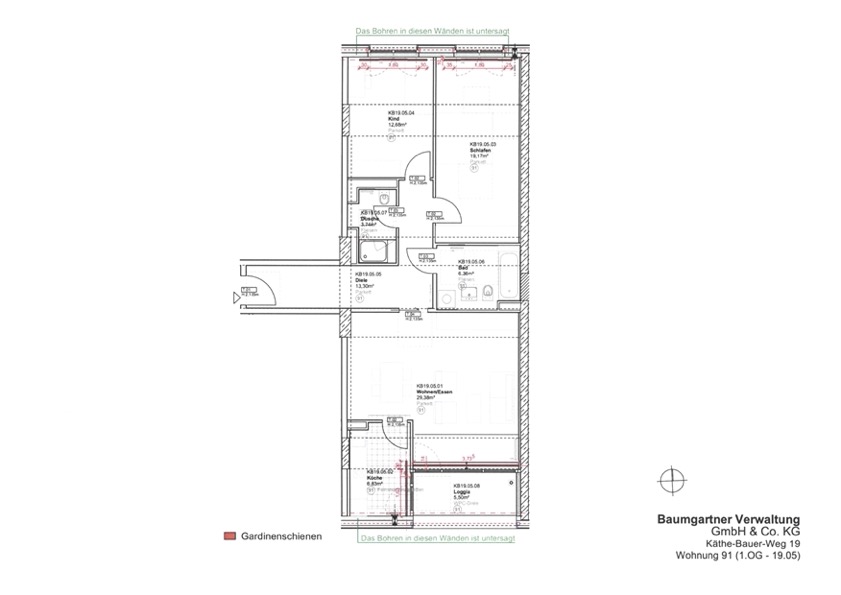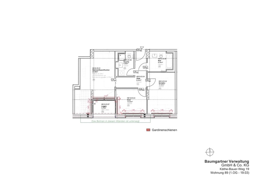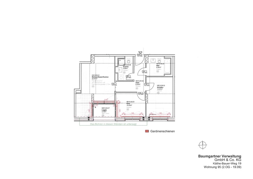 Die Loggia (falls vorhanden) wurde zur Hälfte bei der Wohnflächenberechnung berücksichtigt.