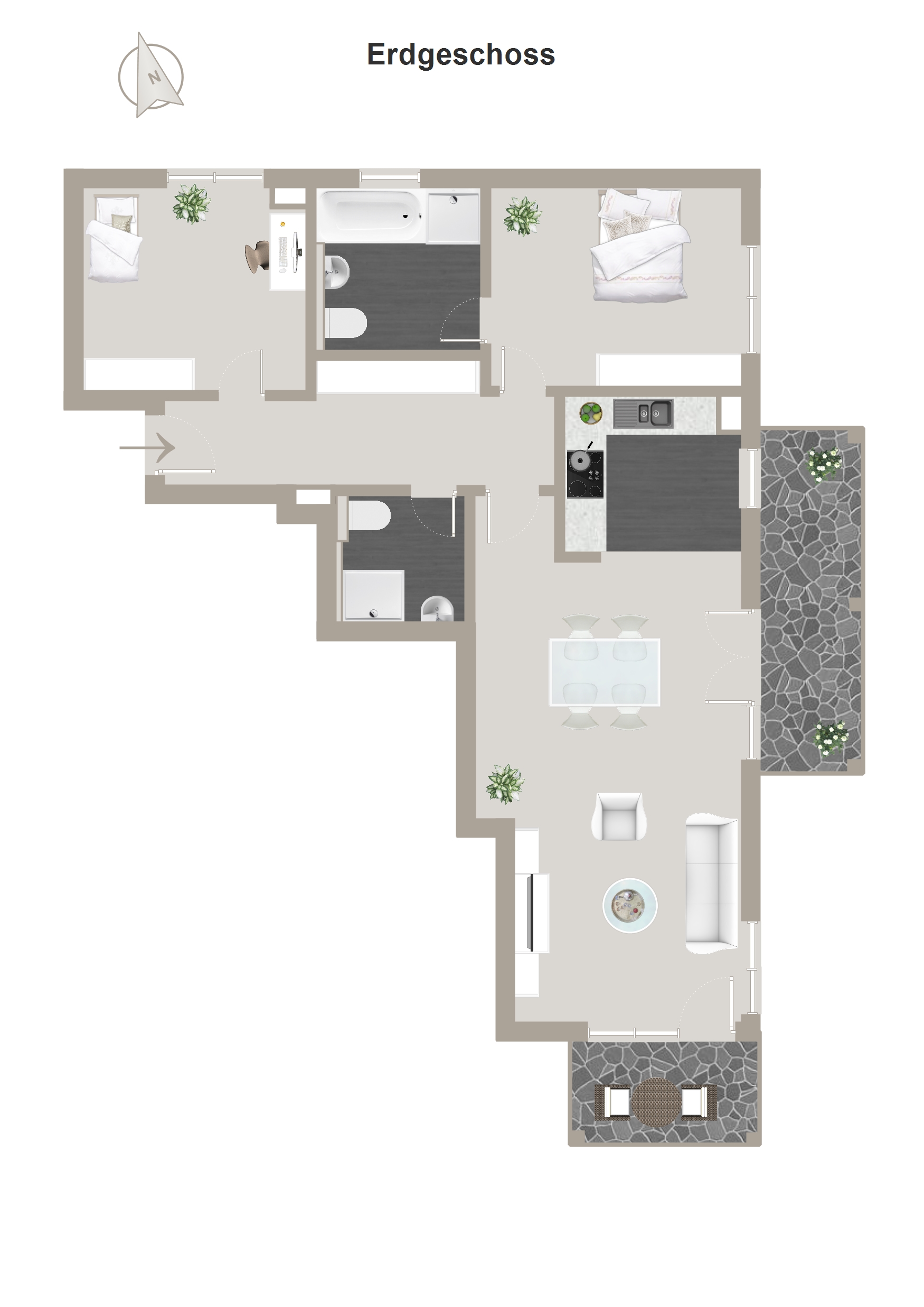 Diese sehr gut ausgestattete und ruhig gelegene Wohnung (Baujahr 2009) befindet sich in einer kleinen Wohnanlage, die aus nur drei exklusiven Stadthäusern besteht.