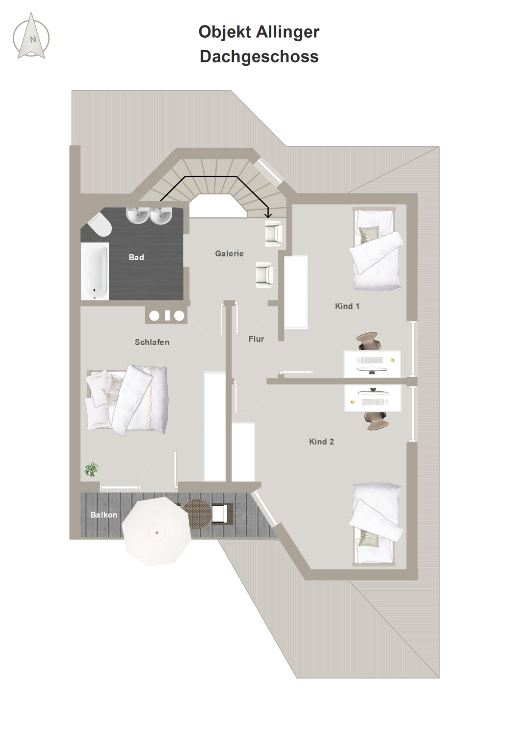 - 3 Schlafzimmer im Obergeschoss – Eines davon mit einem Zwischenboden