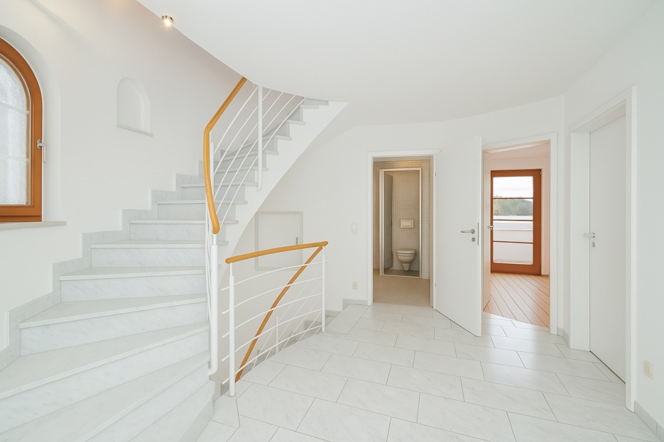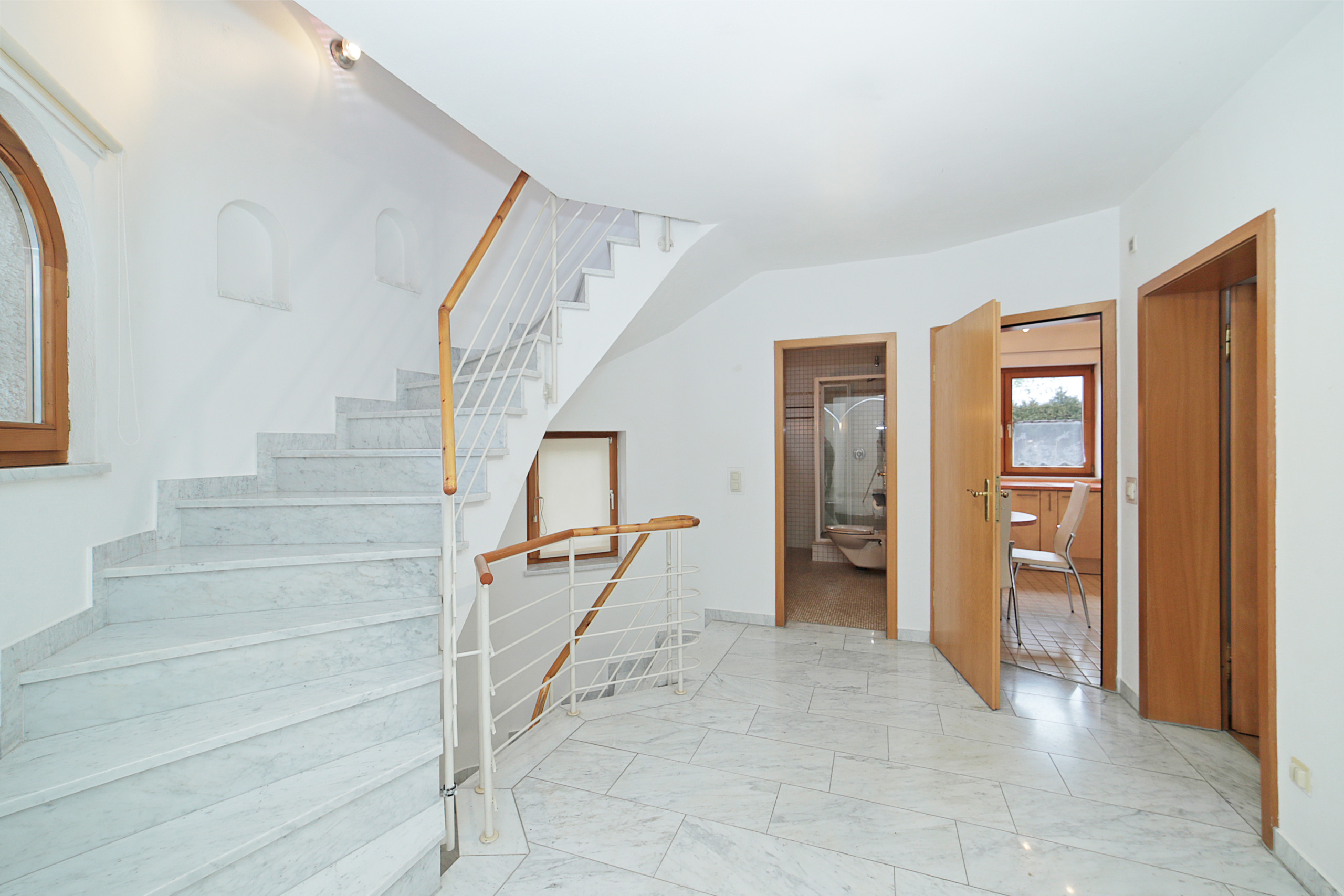 - Eingangsbereich, Flur (EG und KG) und Treppen mit Carrara-Marmor belegt