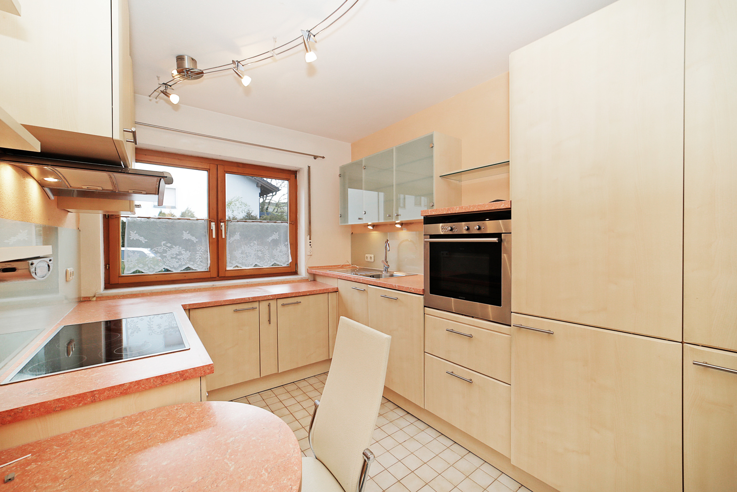 - Ansprechende Küche (Ceran-Kochfeld, Geschirrspüler, Backofen, Kühl-/Gefrierkombi, Dunstabzug – Geräte von Bosch, Siemens und Neff) mit ausreichend Ober- und Unterschränken, einer Theke und Platz für zwei Stühle