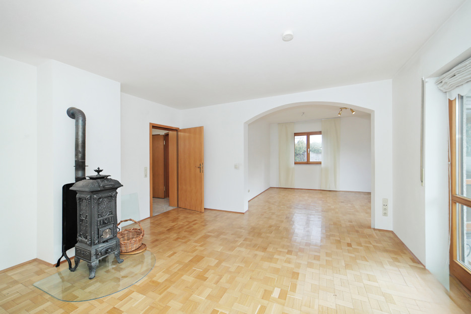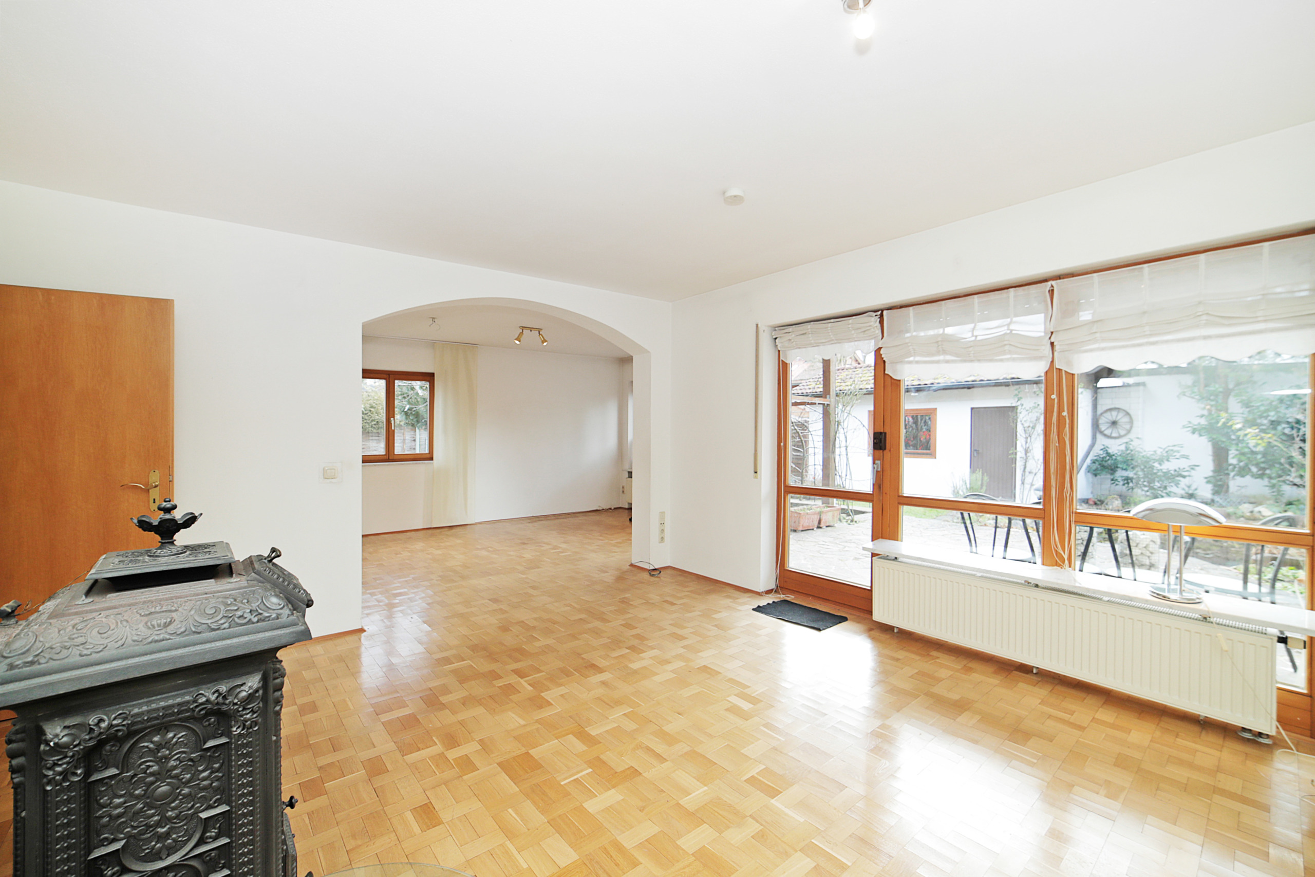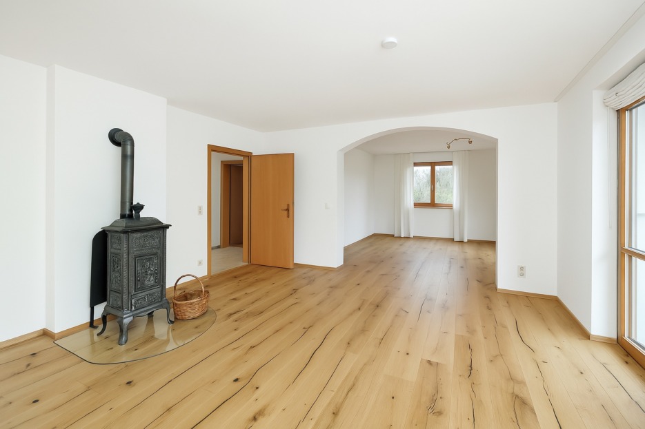 - Offener & heller Wohn-/Essbereich mit einem 100-jährigen gusseisernen Ofen (mit Kohle und Holz befeuerbar) und Zugang zur Terrasse