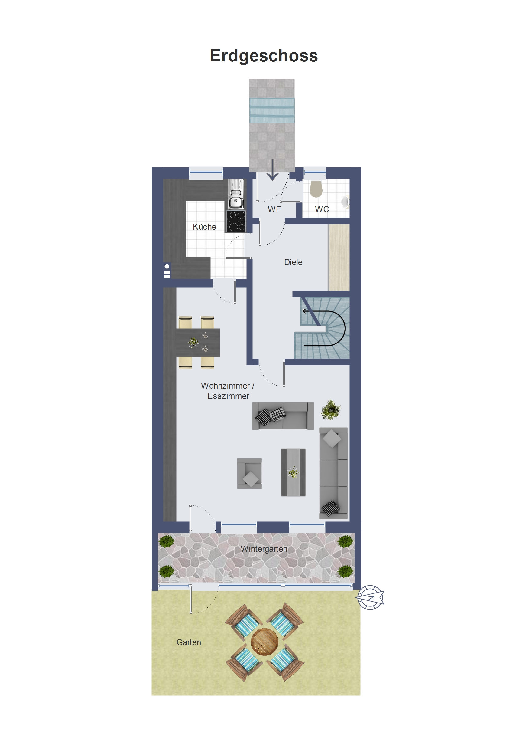 Das angebotene Reihenmittelhaus mit Wintergarten befindet sich an einer ruhigen Straße mit wenig Verkehr in einem reinen Wohngebiet. Es wurde um das Jahr 1968 in Ziegelbauweise (Außenmauerwerk) errichtet und bietet viel Platz und weiteres Potential. Im Laufe der Jahre wurden immer wieder Renovierungsarbeiten durchgeführt (z.B. teilweiser Tausch der Holzfenster gegen Kunststofffenster, Modernisierung der Gästetoilette, Stäbchenparkett im Wohnzimmer…), aber auf absehbare Zeit fallen weitere Investitionen bei einem Eigentümerwechsel an (z.B. Bad, Küche, Heizungsanlage). Doch nun zum Haus: Über die geräumige Diele erreicht man die Gästetoilette, die Küche und den großzügigen und offenen Wohn-/Essbereich. Im Wohnzimmer wurde mit Liebe zum Detail ein optisch ansprechender Stäbchenparkett verlegt. Vom Wohnzimmer aus schweift der Blick sofort auf das Highlight des Hauses: Den geräumigen und beheizten (Fußbodenheizung) Wintergarten mit Terracotta-Fliesen, mit Zugang zum gepflegten und liebevoll angelegten Garten. Nun zum Obergeschoss: Dort befinden sich neben dem Atelier, das Gästezimmer, das Schlafzimmer, ein Einbauschrank mit viel Platz, eine Abstellkammer und das Bad. Das Tageslichtbad verfügt über eine Badewanne, Dusche, Bidet, WC und zwei Waschbecken. Das Dachgeschoss ist noch nicht ausgebaut, die Versorgungsleitungen wurden aber bereits verlegt. Nun zum Keller: Ein Kellerraum mit Fenster ist beheizbar. Der geräumige Vorratskeller bietet viel Stauraum, sogar die Waschmaschine und der Trockner haben ihr eigenes Zimmer. Vor dem Haus gibt es zwei Stellplätze.