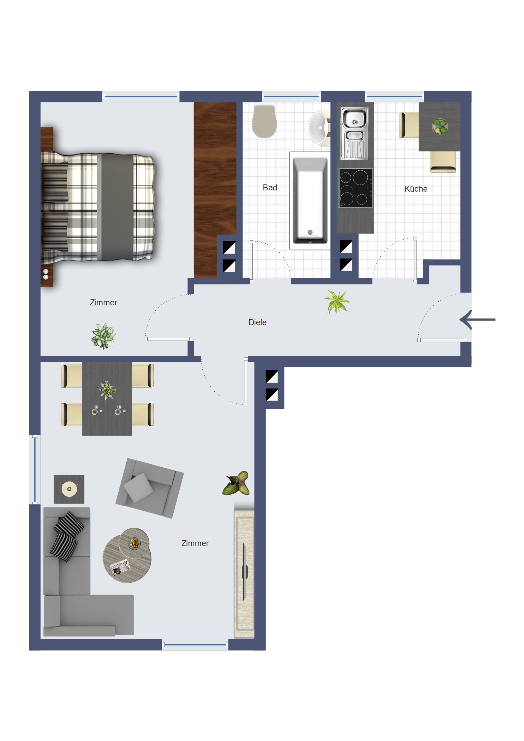 Bitte beachten Sie, dass der Grundriss im Bad von der tatsächlichen Ausführung abweicht.