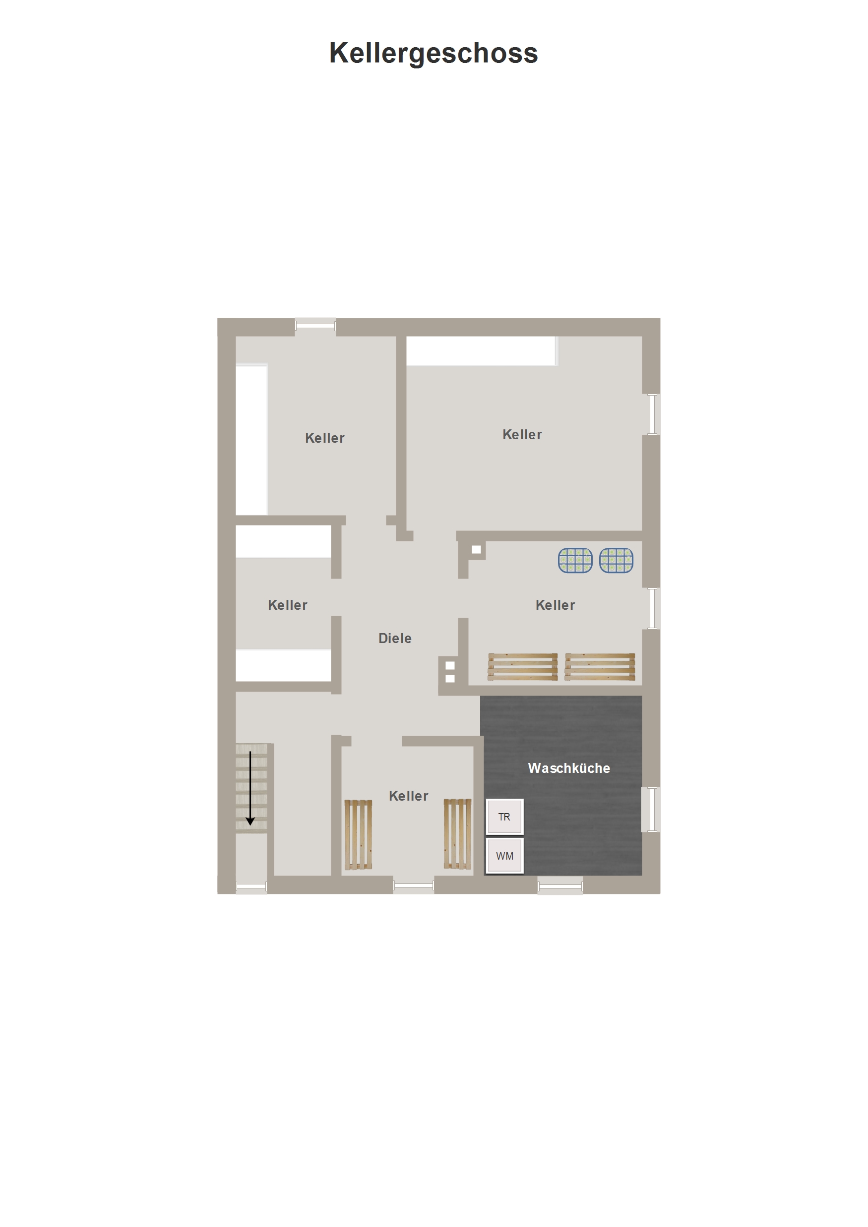 - Waschkeller; Eine Dusche, ein WC und eine Küchenzeile sind ebenfalls im Kellergeschoss untergebracht