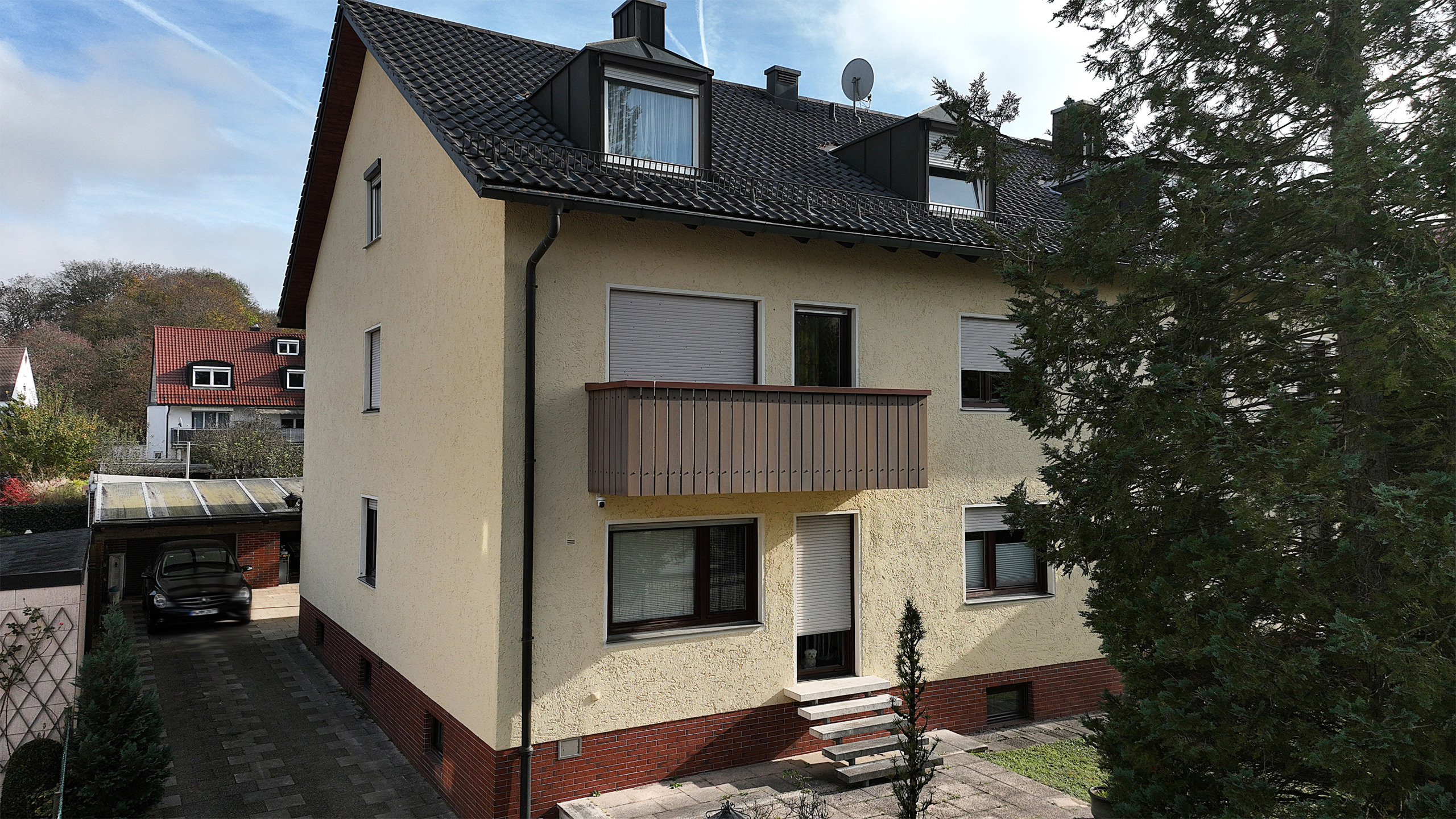 Sie sind auf der Suche nach einem Ort, an dem Sie mit Ihrer Familie zur Ruhe kommen können und sogar mit zwei Generationen und einem Dach leben könnten? Mit einem Zusatzeinkommen, falls Sie nicht alle Wohnungen selbst nutzen wollen und mit der Option, ein weiteres Gebäude auf dem Grundstück zu errichten? Dann könnte Sie unser nächstes Projekt in der Fasanerie interessieren. Ursprünglich handelt es sich um eine Doppelhaushälfte. Die Wohnungen im Erdgeschoss und Obergeschoss verfügen über identische Grundrisse. 4 Zimmer im Obergeschoss sind einzeln vermietet worden und es besteht die Möglichkeit noch das Wohnzimmer zu vermieten, das aktuell nicht genutzt wird. Im Dachgeschoss befinden sich ein Appartement und eine 2-Zimmer-Wohnung. Für die Allgemeinheit gibt es genügend Lagerflächen im Kellergeschoss und einen großzügigen Garten mit diversen Obstbäumen. Das Dach wurde in 1997 neu gedeckt, die Haustür in 2003 erneuert.