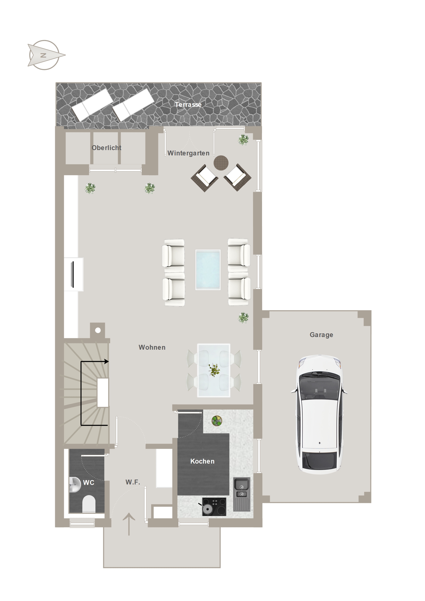- Einzelgarage und zwei Stellplätze