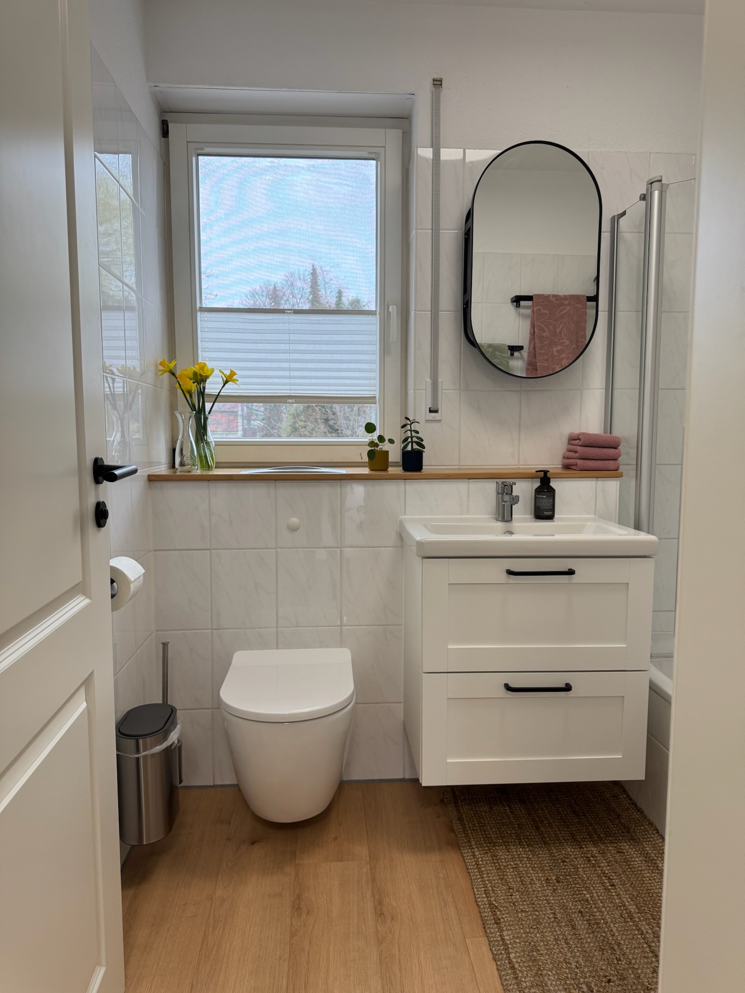 Ein separates Gäste-WC sowie das stilvoll renovierte Hauptbad (2024) runden Angebot ab.