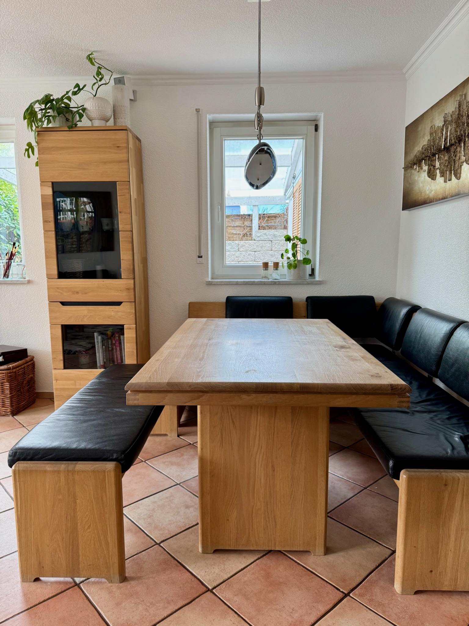 Ein weiteres Highlight des Hauses ist die hochwertig ausgestattete Einbauküche, die 2023 modernisiert wurde. Schwarze Granit-Arbeitsflächen treffen auf ein elegantes Edelstahlspülbecken, ein Induktionskochfeld und Backofen von AEG, eine AEG-Dunstabzugshaube sowie einen Bosch-Geschirrspüler. Eine Kühl-Gefrierkombination, eine separate Gefriereinheit und praktische Apothekerschränke bieten zusätzlichen Komfort.