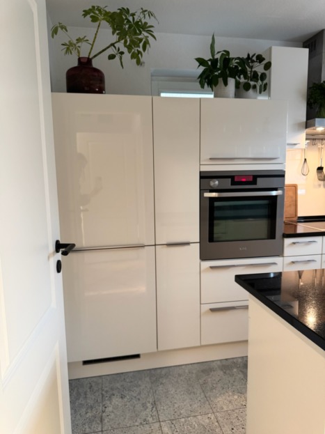 - Hochwertige Einbauküche mit Granitplatte, Markengeräten (AEG, Bosch), Kühl- und Gefrierkombination, Apothekerschränken