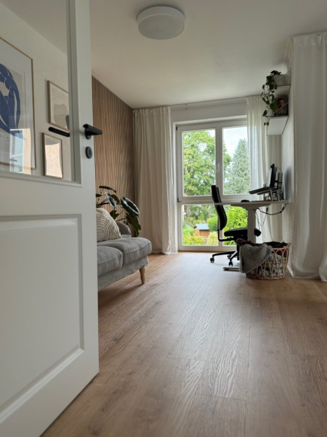 Das ausgebaute Dachgeschoss bietet zusätzlichen Raum zur freien Entfaltung – perfekt als Büro, Atelier oder Rückzugsort. Dank elektrischer Rollläden und Schiebetüren sind hier Stauraum und Privatsphäre optimal gelöst.