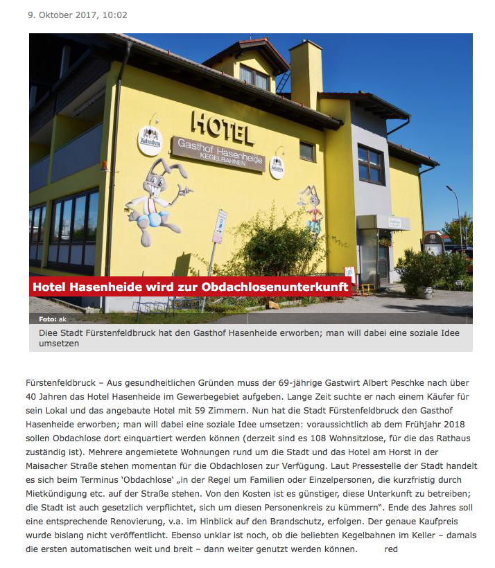 VERKAUFT: Hotel/Gasthof Hasenheide in FFB